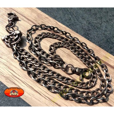 Chaîne pour portefeuille ou clés mailles plates 3 branches avec finition double têtes de mort.