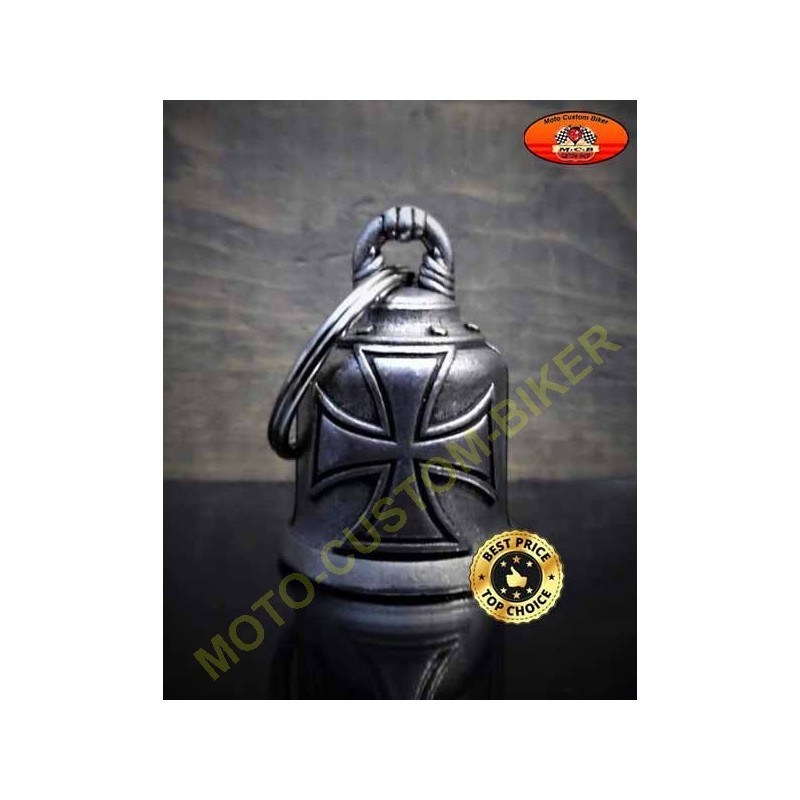 Clochette moto porte bonheur avec motif croix de malte, voir photos