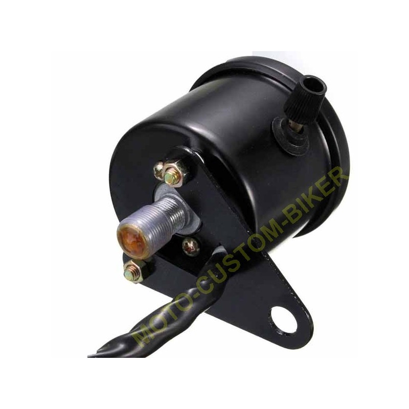 Compteur de moto universel noir, kilométrique avec entrainement par câble et témoins point mort, phare, clignotants