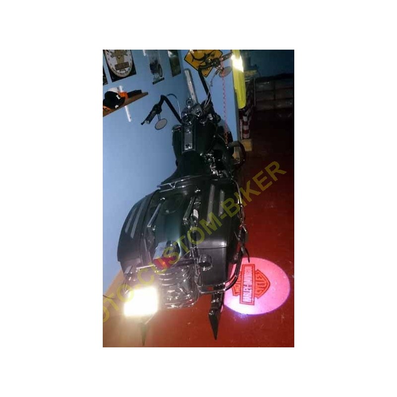 Ce produit fonctionne comme une lumière projetée sur le sol avec le logo Harley, du plus elle effet