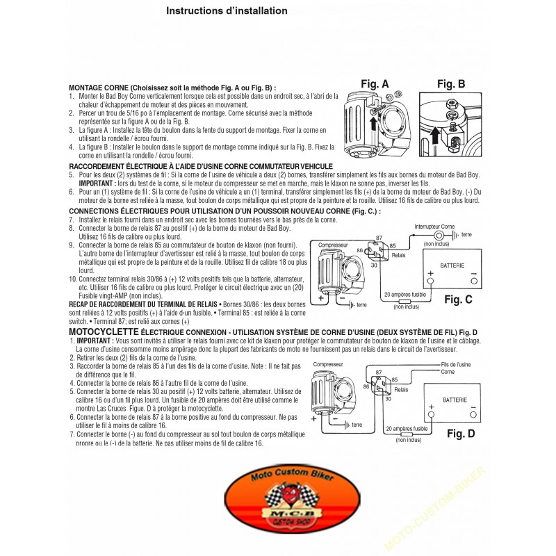 Le Bad Boy est le dernier cri en matière de klaxon pneumatique. Son design monobloc breveté ne nécessite aucun tuyau. Son installation est simple et rapide : il suffit de connecter les fils du klaxon d'origine au compresseur. Le montage se fait à l'aide d'une seule vis fournie. Il produit un puissant son de klaxon pneumatique à deux tonalités, deux fois plus fort qu'un klaxon d'origine. Compact, le Bad Boy s'adapte à tous les véhicules 12 volts